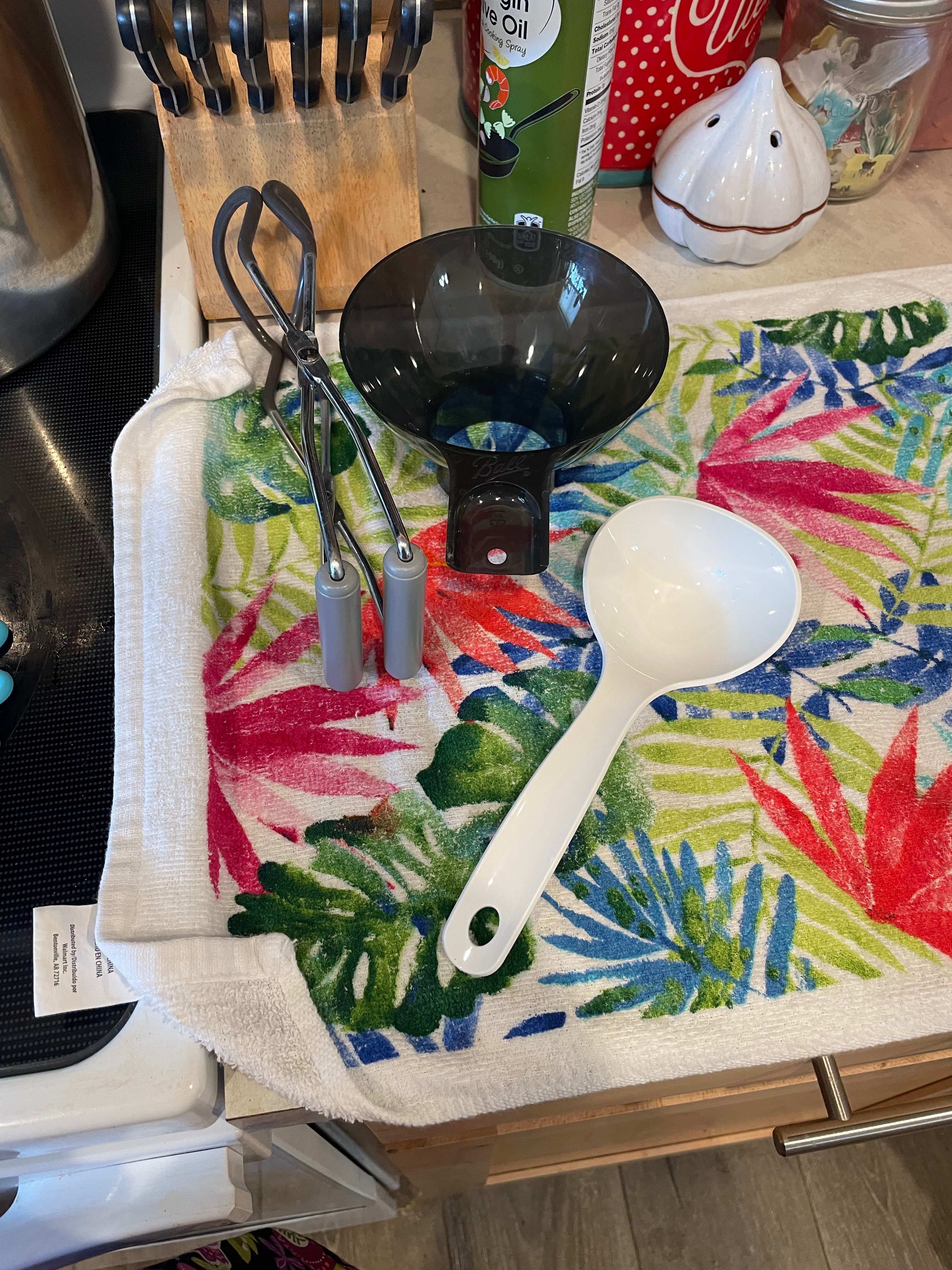You’ll also want to get the boiling water canner set up. Water bath canners can be purchased, but you can also use a large covered pot so long as you can maintain at least an inch of water over the top of your largest jars once the water starts boiling. Actual water bath canners come with a canning rack that sets inside them to allow the water to move around the jars while boiling. Extra jar rings serve the same purpose, you just can’t lift the jars in and out of the canner if you choose to use them. I do not have a water bath canner, so I use a large covered pot with extra rings in the bottom.